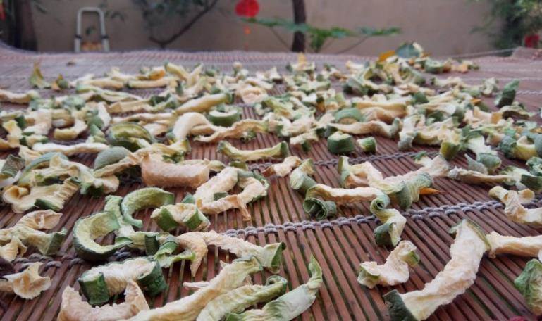 把蔬菜曬一曬,是保存蔬菜的一種方式,由于失去了水分,放1~2年都不會壞,等到冬天拿出來,就不愁沒菜吃了,尤其是燜肉吃特別香。干巴巴的干菜吸收了肥肉的油脂,變得特別豐潤,比肉還要好吃。