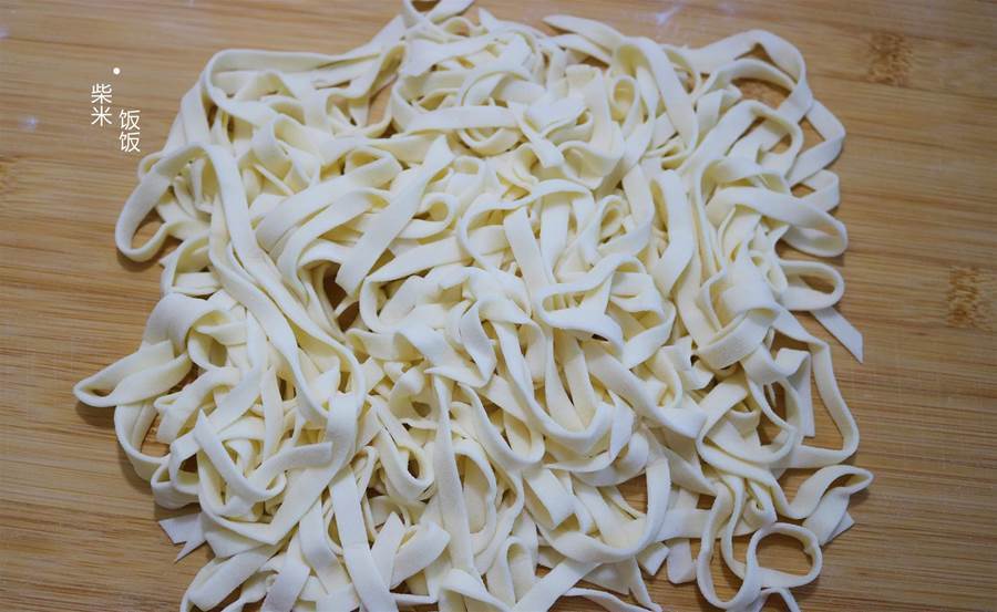 4,面板上撒些面粉防粘,將面團搟成薄薄的大面皮。具體厚度根據自己的喜好來,不過搟薄一些,更好煮,口感也更滑。