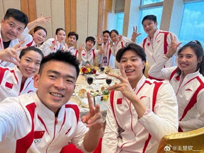 巴黎奧運會內地奧運健兒代表團訪問了香港,奧運冠軍王楚欽曬出了與其他運動員的合影,感謝了香港。