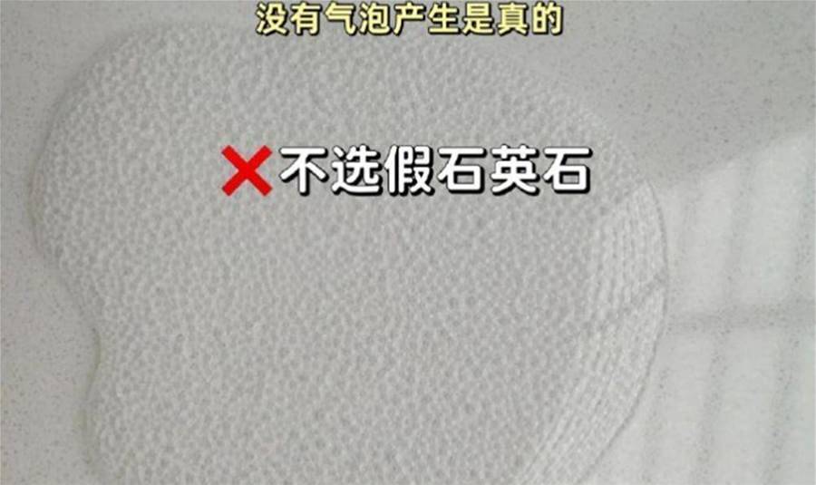 現在這種石英石台面,其實大多是看其中石英砂含量多少,大多時候我們買到的都不會出錯,但也不得不防備無良商家——我們可以用白醋來驗證石英石的真假。