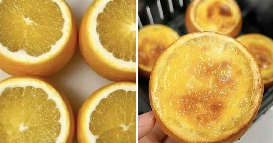 自制橙子烤布丁!!這個搭配真的融合的怡到好處!!滿口橙子清香不甜膩!入口即化好好吃!空氣炸鍋150度烤20分鐘即可