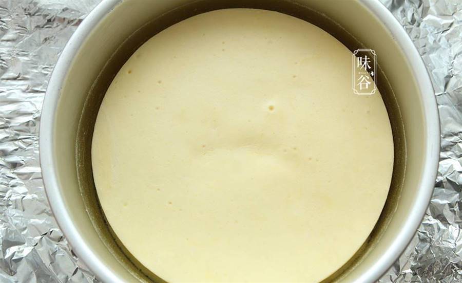 4、模具抹橄欖油,將面糊倒入模具里震出大氣泡,蓋上保鮮膜,模具下面最好包上錫紙防止進水。上鍋水開后,用中火蒸25分鐘關火;