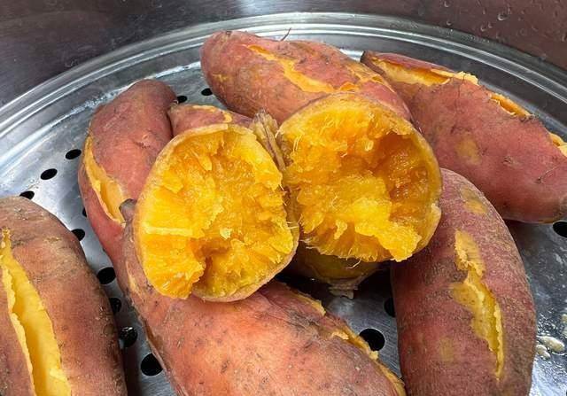 40分鐘后關火,再燜5分鐘出鍋,您看這樣蒸的紅薯個個都開口笑,咬一口,又香又甜又流油,特別好吃。有人會問為啥不用烤箱烤多方便?其實是因為很多人胃不好,吃烤紅薯容易胃酸,還容易上火。而吃蒸的紅薯適合大部分人的口感,好吃又不上火。